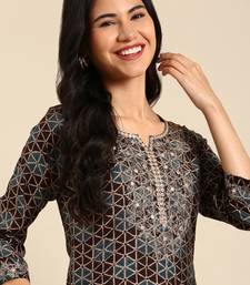 | Product Name | Women's Calf Length Round Neck Coffee Brown Geometric Straight Kurta | |