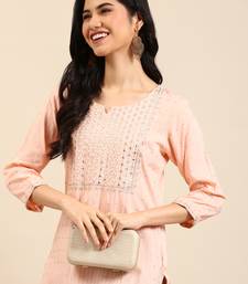 | Product Name | Women's Calf Length Round Neck Peach Embellished Straight Kurta | |
