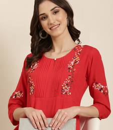 | Product Name | Women's Calf Length Round Neck Red Solid Straight Kurta | |