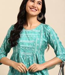 | Product Name | Women's Calf Length Round Neck Turquoise Blue Geometric Anarkali Kurta | |