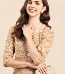 Women's calf length scoop neck tan ethnic motifs straight kurta