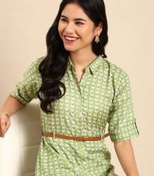 | Product Name | Women's Calf Length Shirt Collar Green Floral Anarkali Kurta | |