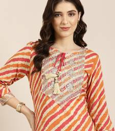 | Product Name | Women's Calf Length Tie Up Neck Orange Striped Straight Kurta | |