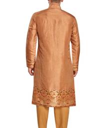 Brown hand block printed kurta with embroidery banarsi silk kurta payjama etnic wear :: festive wear