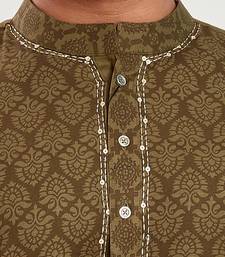 Olive green hand block printed kurta with embroidery viscos kurta payjama etnic wear :: festive wear