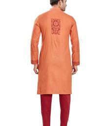 Orange hand block printed kurta with embroidery viscos kurta payjama ethnic wear :: festive wear