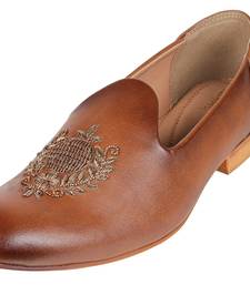 Tanny shoes men's faux leather brown zari embroidery ethnic shoe for bridal casual party