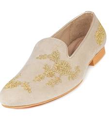 Tanny shoes men's velvet material all over embroidery cream slip on jutti