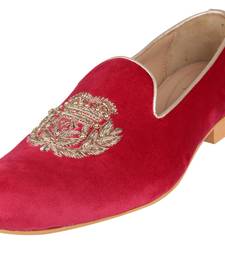 Tanny shoes men's velvet material zari embroidery maroon slip on jutti