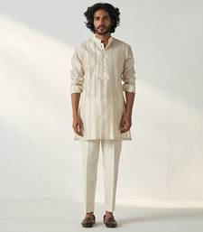 | Product Description | This Set Includes Kurta And Pajama. Kurta Has Surface Enhancement Of Resham, And Backstitch Detail On Armhole Along With Pintuck.Its Paired With Chanderi Silk Straight Pants