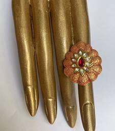 | Product Description | Traditional Ring With Peach Meenakari Embellishments And Inspired Enamelled Kundan And A Natural Red Stone Set In The Middle. For Festivities, Weddings And Wherever You Please.