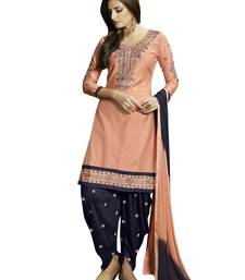 Peach reshamEmbroidery blendedCotton unstitched salwar with dupatta