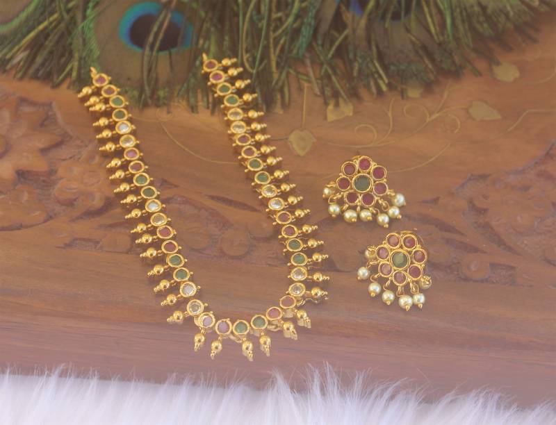 | Product Name | Matte Finish Multicolor Stone Necklace Set | |