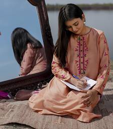 | Product Name | Peach Plain Floral Cotton Kurta Set With Embroidered Sleeves | |