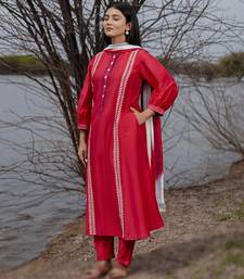Red plain cotton kurta set with embroidery