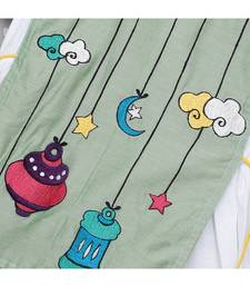 | Product Description | White Cotton Poplin Frock Set With Green Cotton Silk Quirky Eid Elements Embroidered Palla Over Centre Of The Kurta. Drawstrings On The Sides With Colorful Tassels Pyjama With Elasticated Waist.