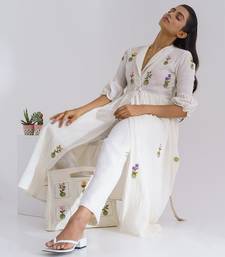 | Product Description | Minimalism Is Beyound Time. We Present To You Our Pearl White Hand Embroidered Khadi Overlaped Kurta With Gathers Paired With Matching Trousers. The Complementing Collar And Sleeves Allows You To Wear It For Both Casual And Special Occasions. Compliment The Look With White Heels And Some Minimal Jewellery And We Assure You This Look On Never Go Wrong. |