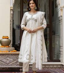 | Product Name | Trendmalls Off White Chanderi Floral Embroidery Salwar Suit Kurta Pant With Dupatta Set | |