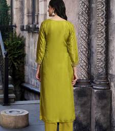 Green satin embroidery kurta pant set with banarasi dupatta for women stitched