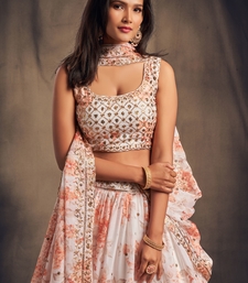 | Product Name | Women's White And Orange Organza Floral Print Lehenga Choli | |