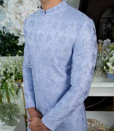 Lilac blue geometric floral sherwani set