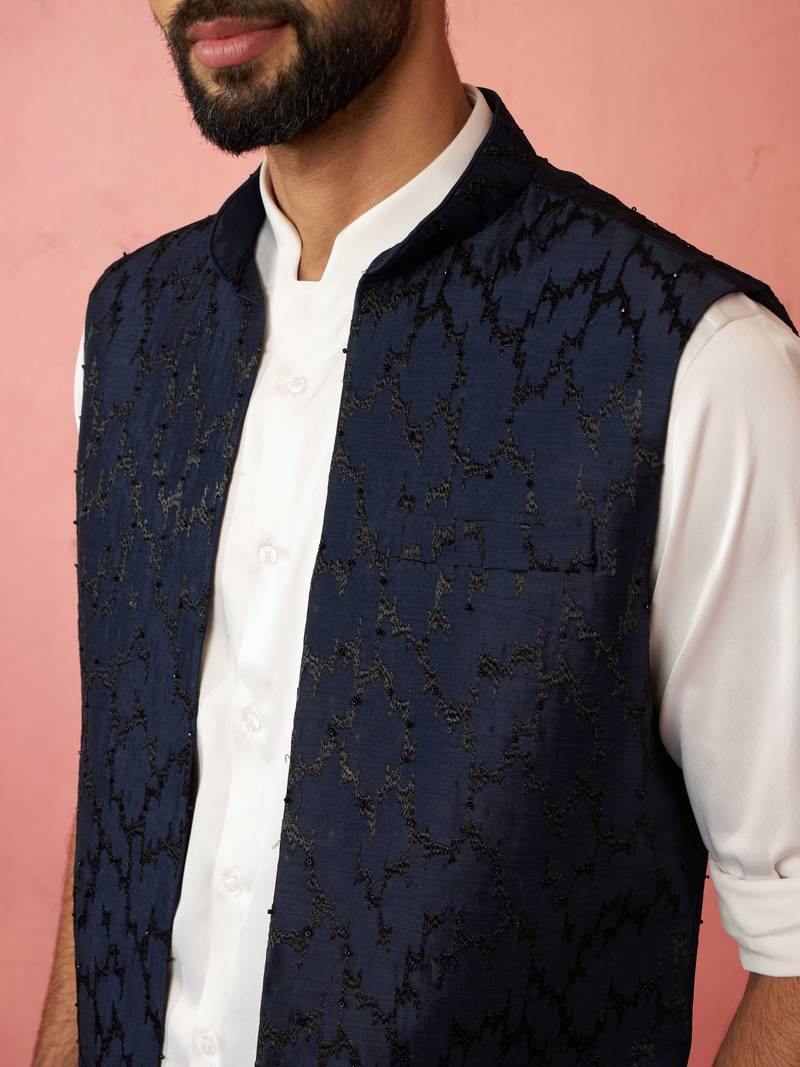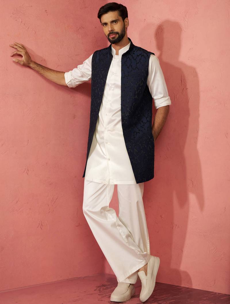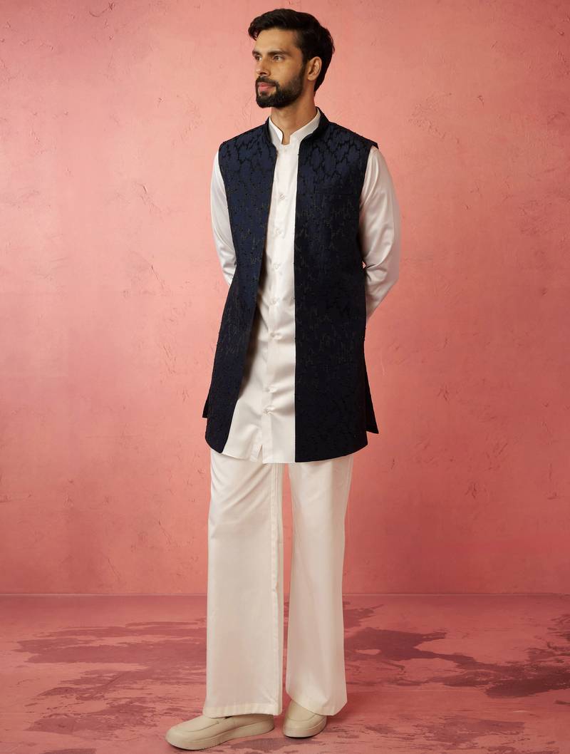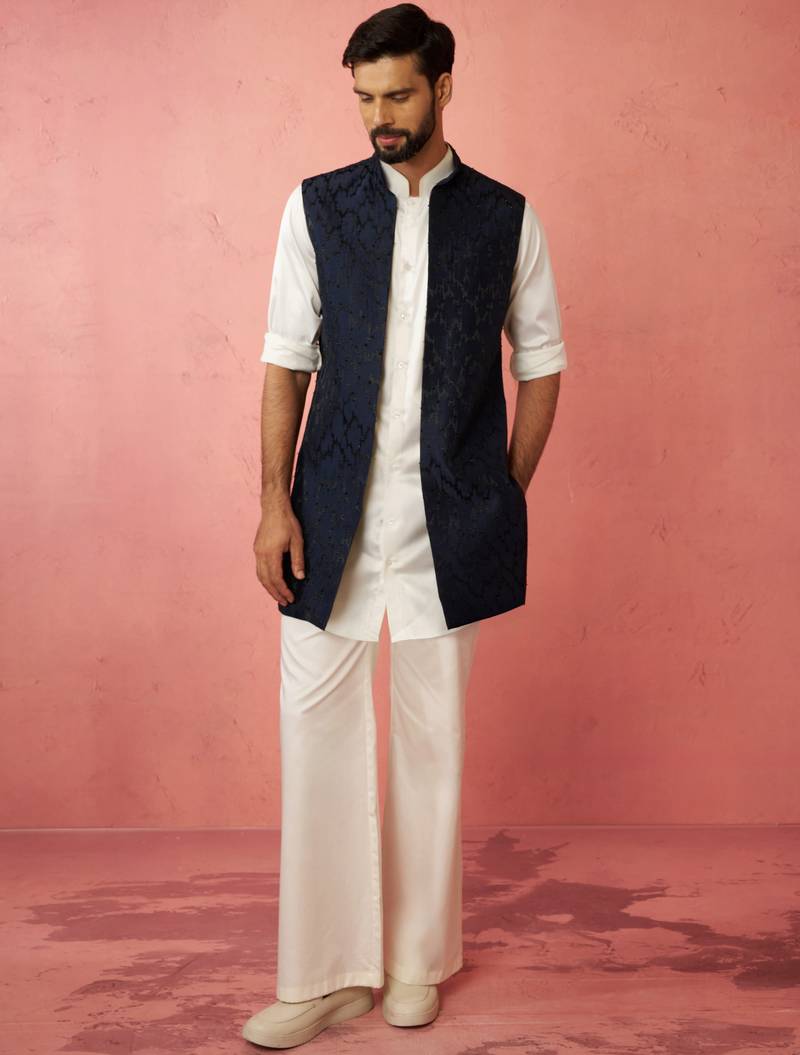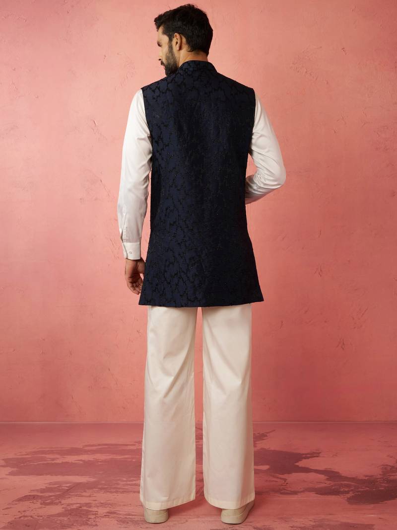 | Product Name | Men's Navy Embroidered Nehru Jacket With Cream Kurta Trouser Premium Set | |