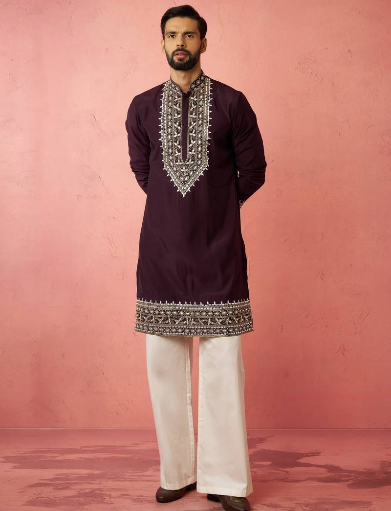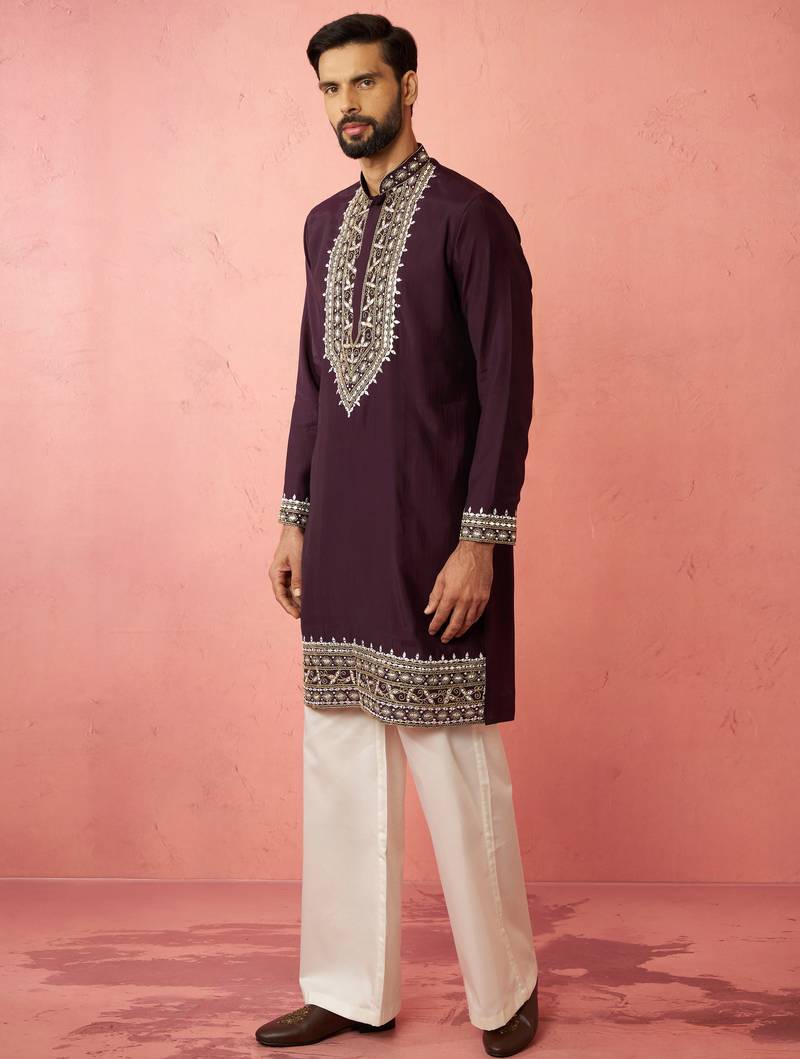 | Product Name | Men's Purple Chanderi Kurta Set With Cream Pant Royal Wedding Collection | |