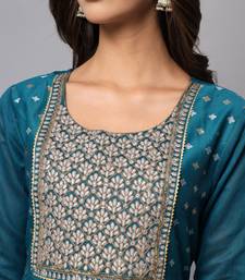 Teal embroidered chanderi silk kurta pant with dupatta stitched
