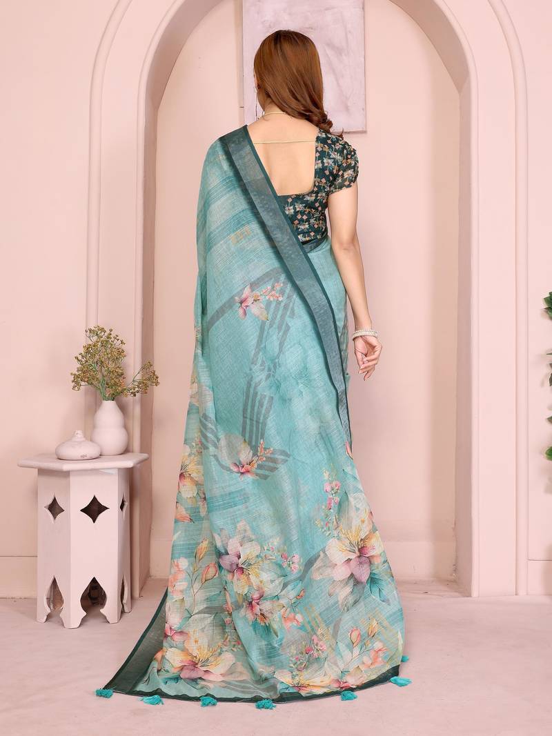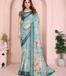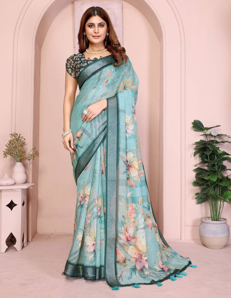 | Product Name | Blue Printed Designer Pallu Linen Saree | |