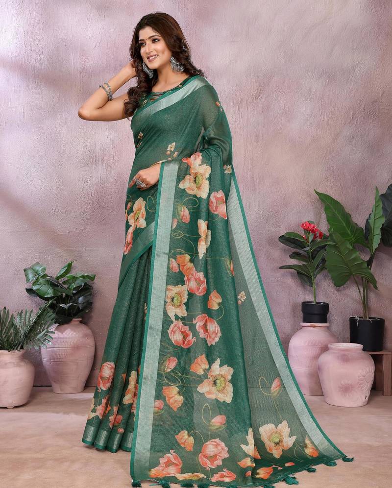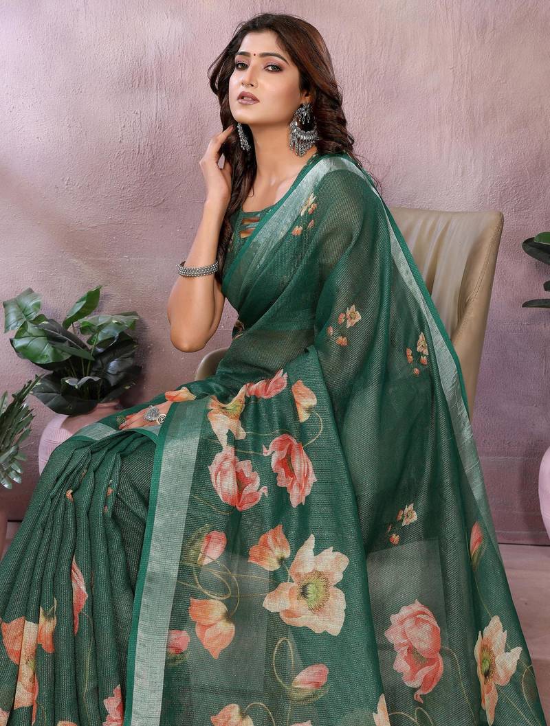 | Product Name | Green Printed Designer Pallu Linen Saree | |