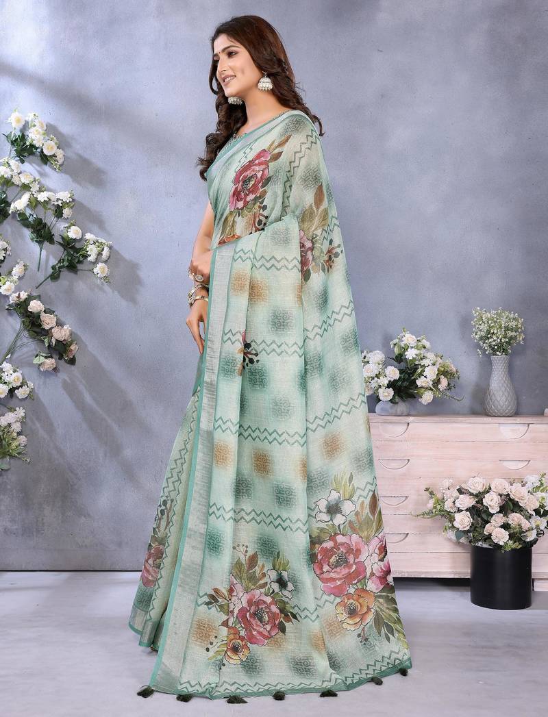 | Product Name | Green Printed Designer Pallu Linen Saree | |