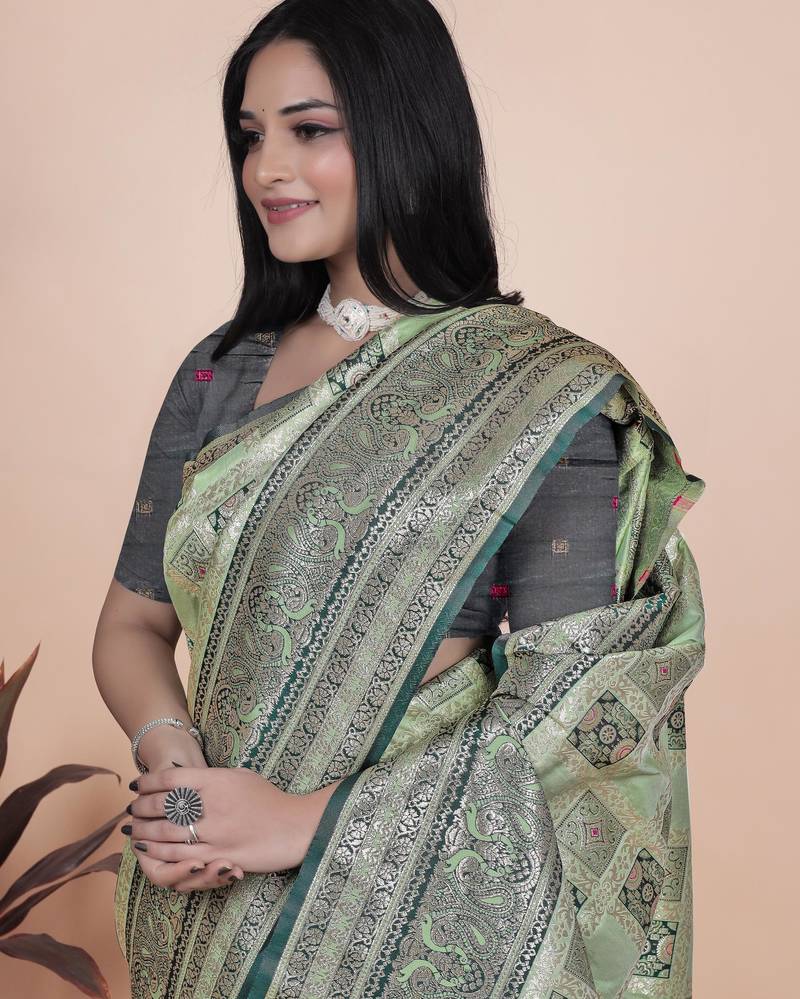 Product Name Green Woven Designer Pallu Banarasi Art Silk Saree