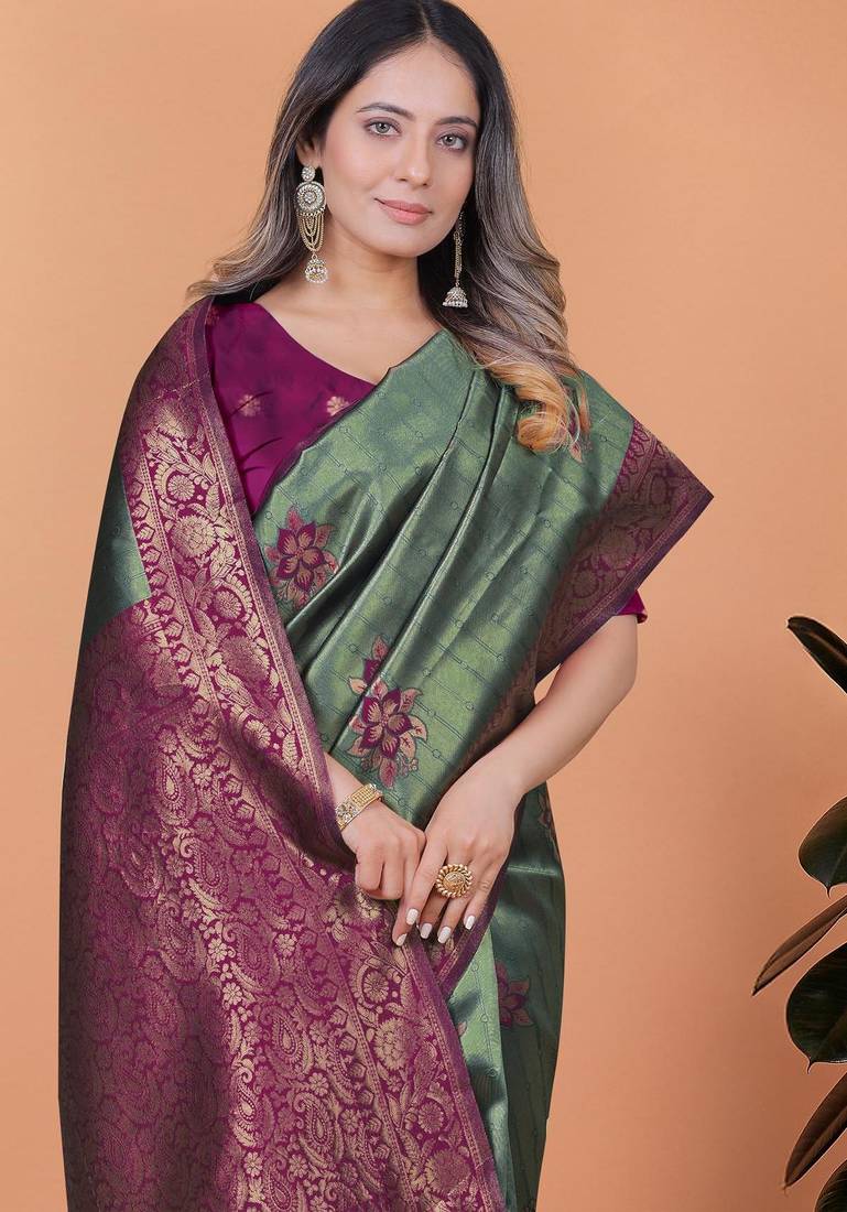 Product Name Green Woven Designer Pallu Banarasi Art Silk Saree