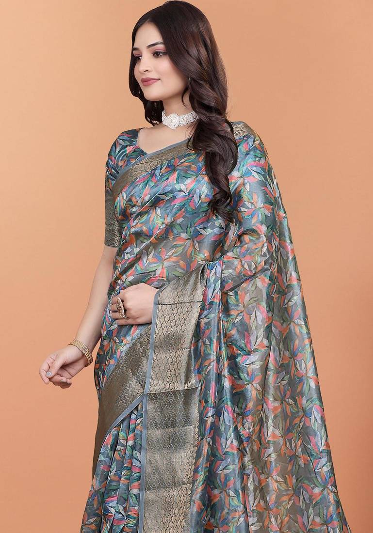 | Product Name | Grey Printed Art Silk Designer Pallu Saree | |