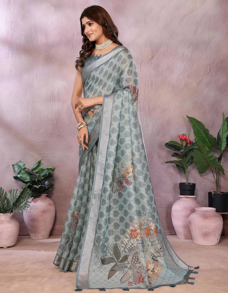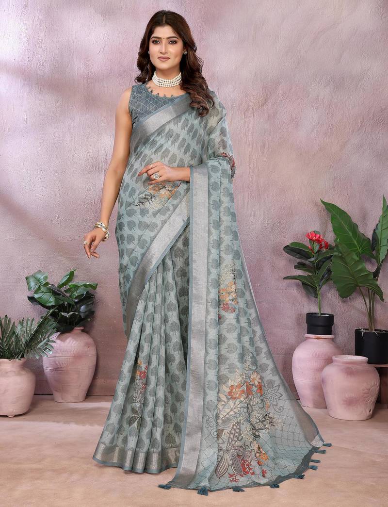 | Product Name | Grey Printed Designer Pallu Linen Saree | |