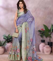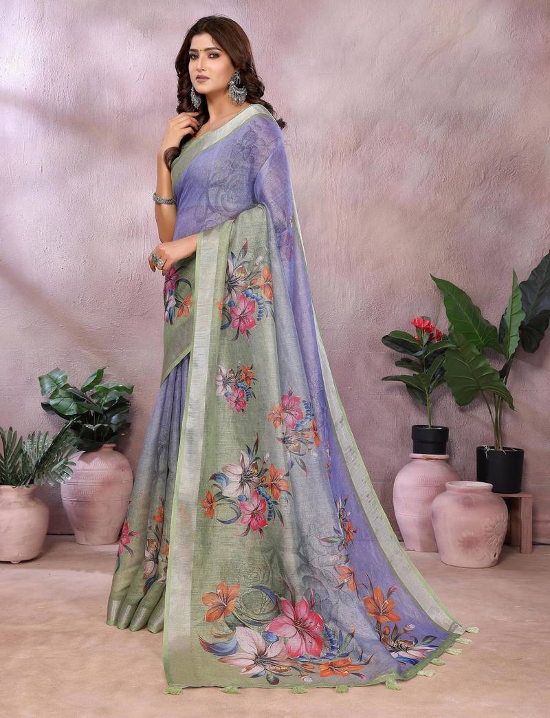 | Product Name | Lavender Printed Designer Pallu Linen Saree | |