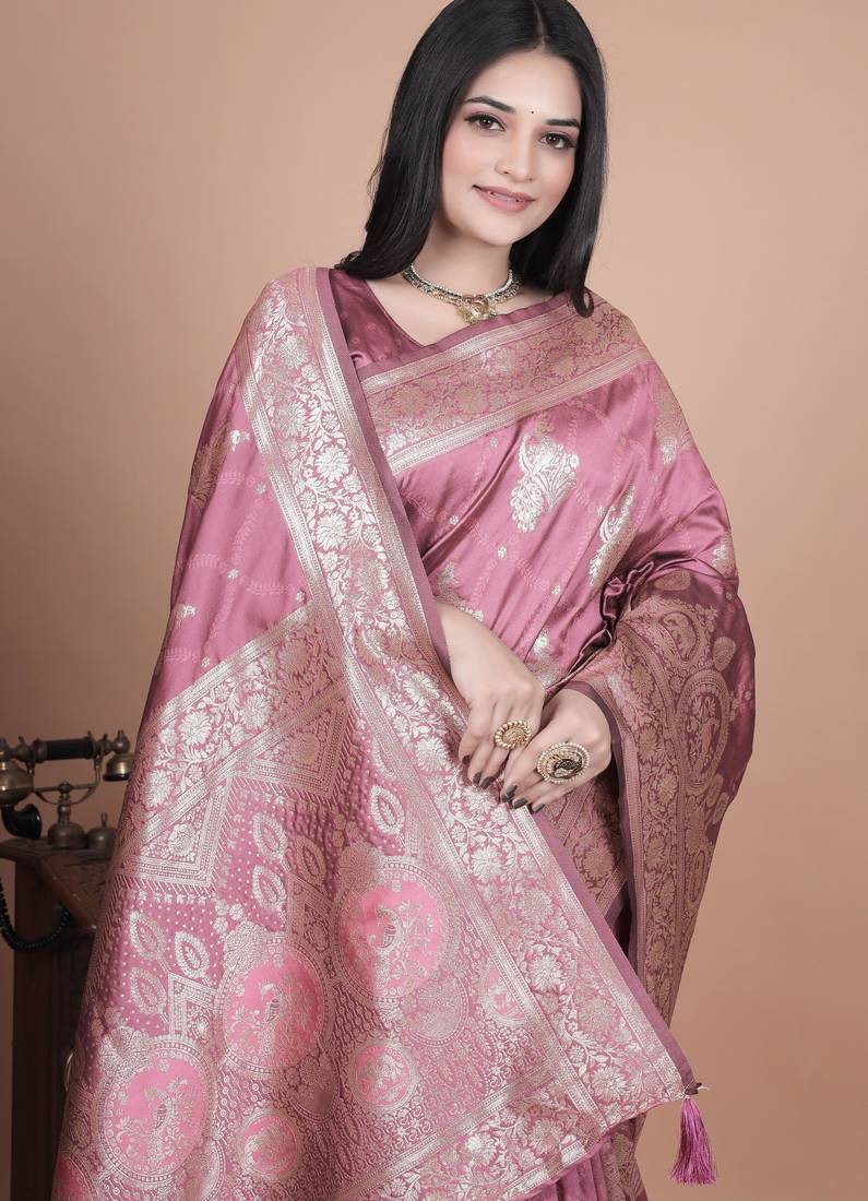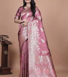 Onion pink woven designer pallu banarasi art silk saree
