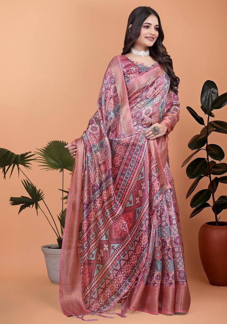 | Product Name | Pink Printed Art Silk Designer Pallu Saree | |