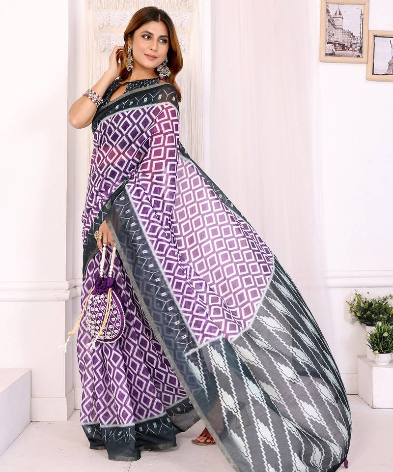 | Product Name | Purple Printed Art Silk Designer Pallu Chanderi Saree | |