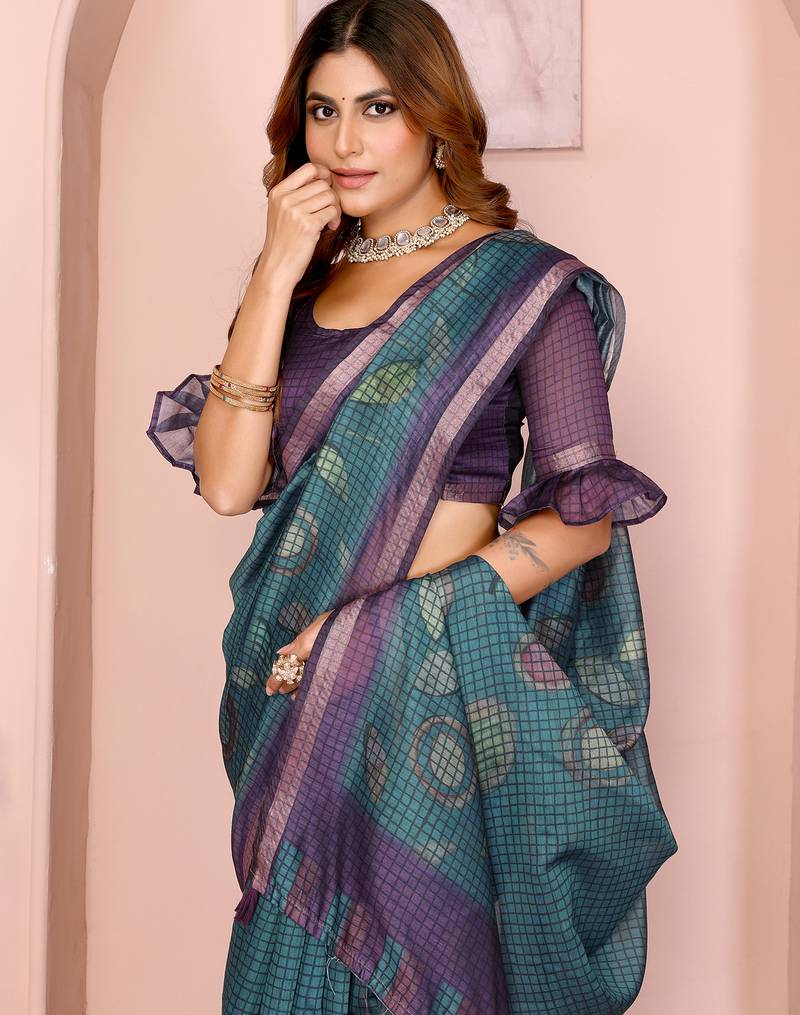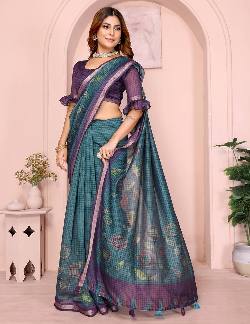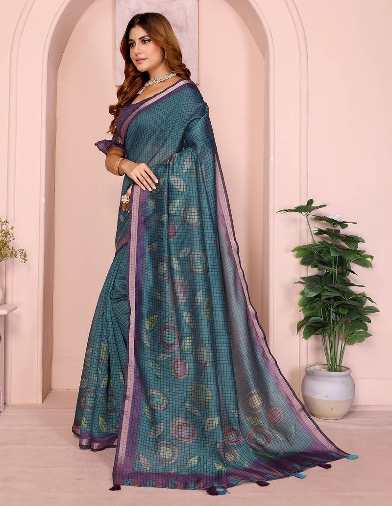 | Product Name | Rama Green Printed Art Silk Designer Pallu Chanderi Saree | |