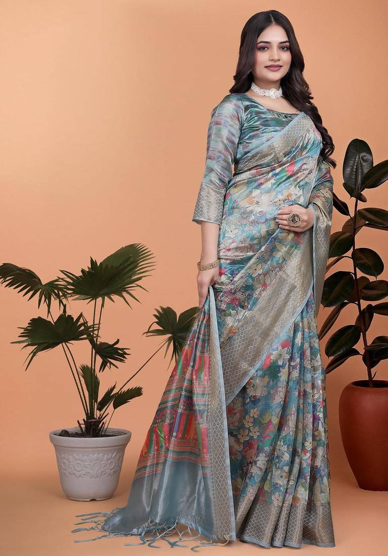 | Product Name | Sky Blue Printed Art Silk Designer Pallu Saree | |