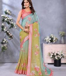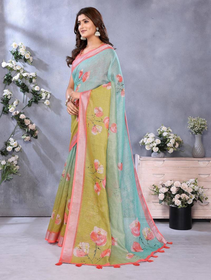 | Product Name | Sky Blue Printed Designer Pallu Linen Saree | |