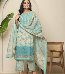 | Product Description | Blue Floral Print Straight Kurta Trouser Dupatta Set,Kurta Design Floral,Lace Work Straight Shape Three Quarter Regular Sleeves Round Neck Calf Length Kurta Straight Hem Cotton Machine Weave Fabric Trouser Design: Printed One Pocket Pure Cotton Trouser Slip On Waist Size & Fit Material & Care Pure Cotton Dry Clean |