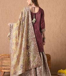 | Product Description | Drift Into A Realm Of Timeless Beauty With Our Enchanting Light Brown Sharara Set, Adorned With Intricate Gotta, Zardozi And Shimmering Pearls. The Flowing Silk Kurta, Airy Georgette Dupatta, And Exquisitely Embroidered Banarsi Silk Garara Radiate Effortless Femininity. |