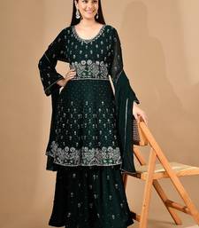 | Product Name | Bottle Green Georgette Sharara Set With Crystal & Thread Work | |
