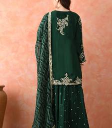 | Product Description | A Festive Green Sharara Set With Crepe Kurta, Flared Sharara, And Georgette Dupatta. Intricately Handworked With Zardozi And Sequin Embroidery. |